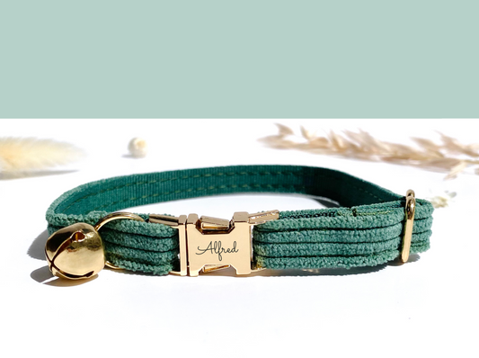 Guler personalizat pentru pisici din velur verde