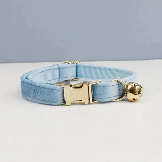 Guler personalizat pentru pisici din velur albastru